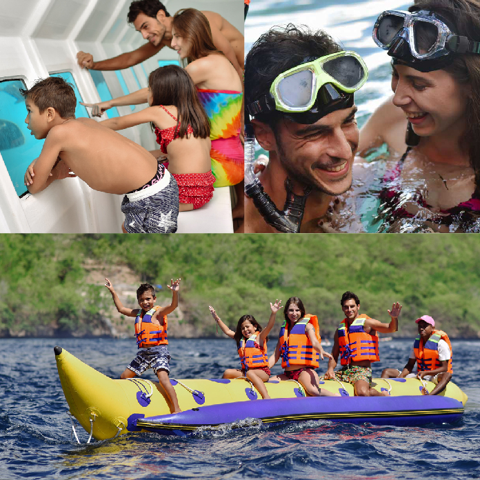 Nusa Penida sambil menikmati keindahan bawah laut dengan melakukan snorkeling. Tidak hanya itu, fasilitas juga terdapat Banana Boat, Water Slide, Kids Pool, & Ocean Water Treatment. Masih kurang? Quicksilver Bali juga menyediakan Semi Submare yang dapat di nikmati oleh segala usia. Didalam Semi Submarine kamu bisa melihat keindahan bawah laut Nusa Penida tanpa basah-basahan!!